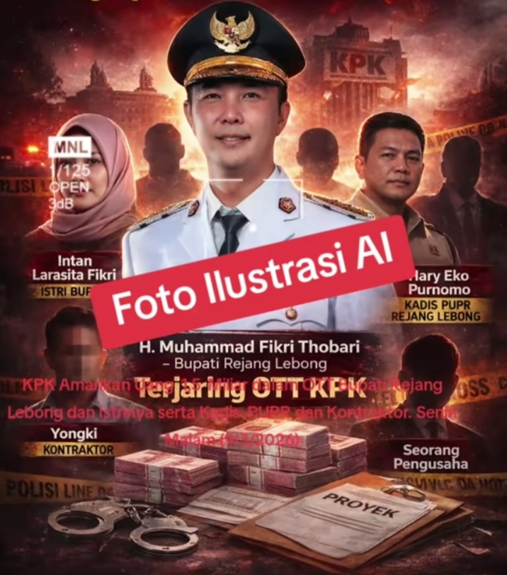 Aroma korupsi kembali menyeruwak dari lingkaran kekuasaan di daerah. Belum habis sebulan bupati Pekalongan terkena OTT,KPK, Lagi-lagi kali ini,Komisi Pemberantasan Korupsi melakukan operasi tangkap tangan di Bengkulu yang menyeret dua pucuk pimpinan daerah sekaligus Bupati Rejang Lebong Muhammad Fikri tobrani dan wakil bupati Hendri.Selasa (10/03/2026).